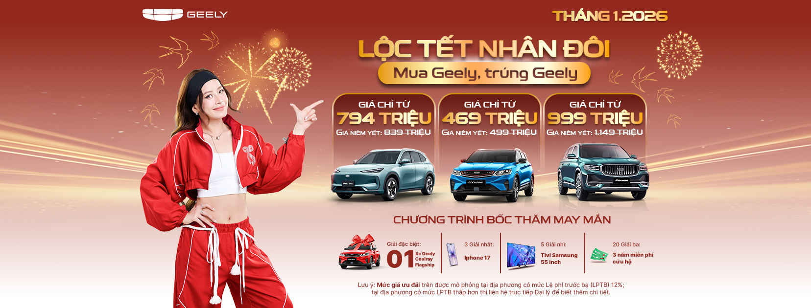 Lộc Tết Nhân Đôi – Mua Xe Trúng Xe Geely Tháng 1 | Ưu Đãi Lớn Đầu Năm Tháng 1 là thời điểm vàng