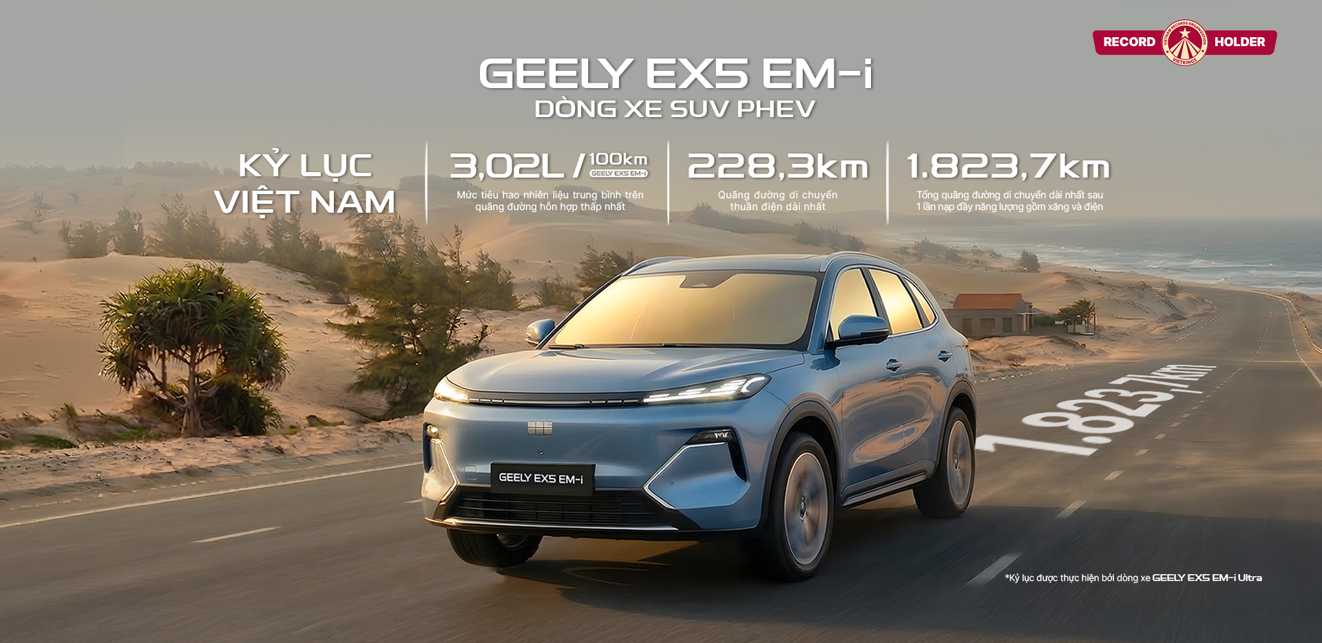 Từ ngày 03/03 đến 05/03/2026, Geely Việt Nam đã thực hiện hành trình thử nghiệm thực tế đầy khắc nghiệt xuyên suốt chiều dài đất nước, bắt đầu từ Hà Nội và kết thúc tại Cam Ranh. Dưới việc thực hiện của hai chuyên gia Trịnh Lê Hùng và Nguyễn Mạnh Thắng cùng sự giám sát chặt chẽ của Tổ chức kỷ lục Việt Nam, dòng xe Geely EX5 EM-i Ultra đã chứng minh hiệu suất vận hành vượt trội và khả năng tiết kiệm nhiên liệu đáng kinh ngạc.